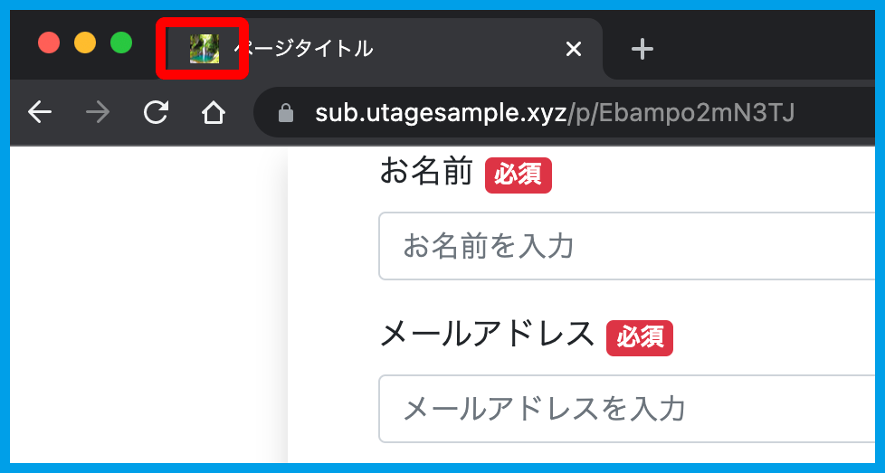 4.ファビコンを設定したドメインが利用されたページを表示すると、設定したファビコンが表示されます。