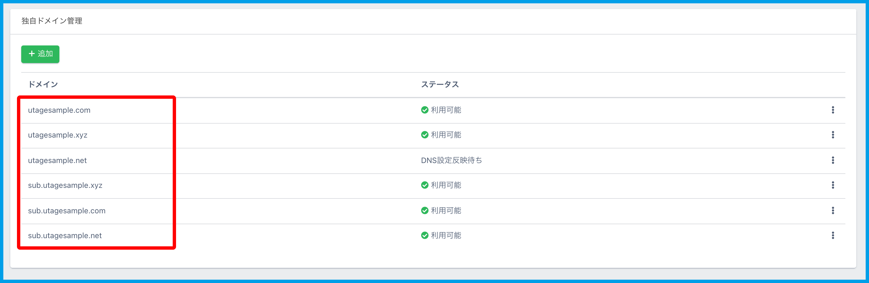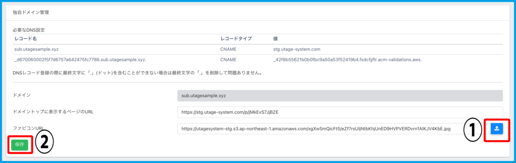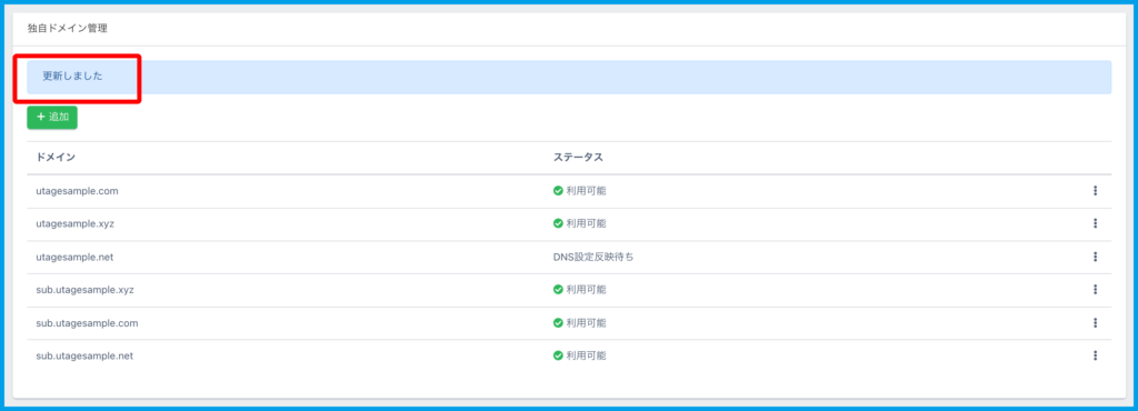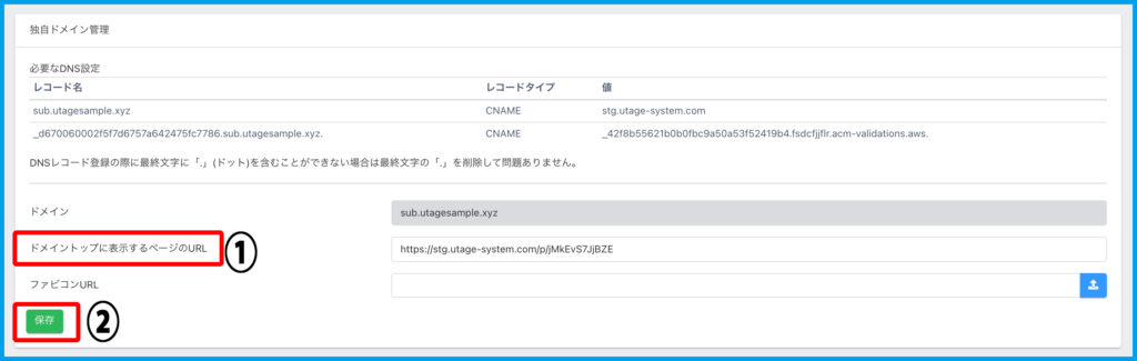 ※今回は「sub.utagesample.xyz」ドメインに設定します。