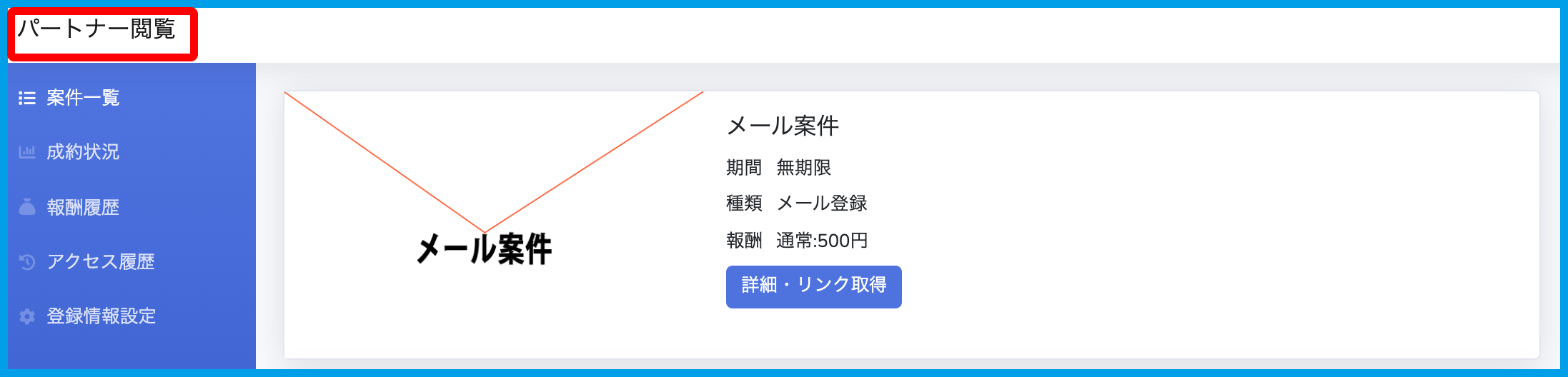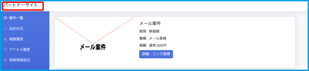 パートナー登録したパートナーが案件内容など確認するサイト名となります。