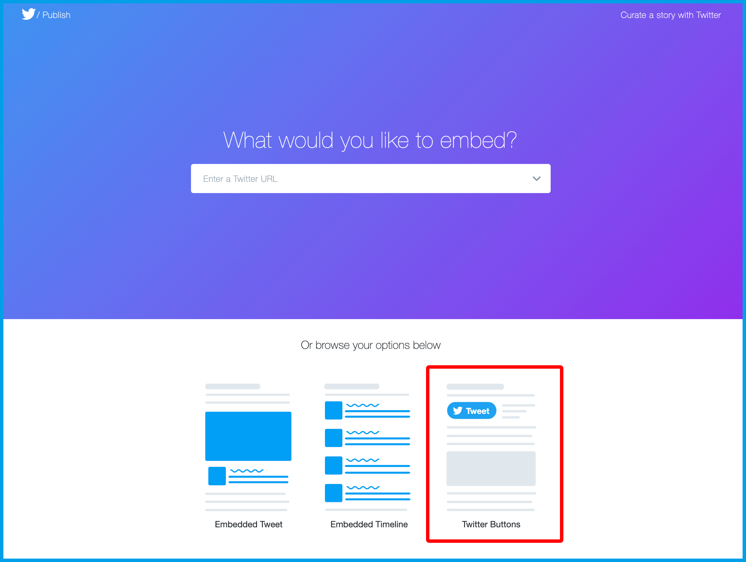 1.Twitterのボタン取得ページを開き、ページ内の[Twitter Buttons]をクリックします。