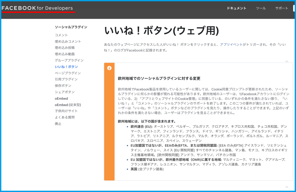 1.Facebook for Developersのボタン取得ページを開きます。
