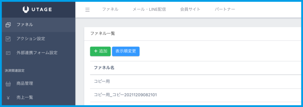 ファネル・ページを複製(コピー)して作成する方法になります。