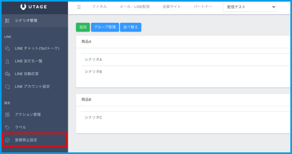 2.左メニュー【登録禁止設定】をクリックします。