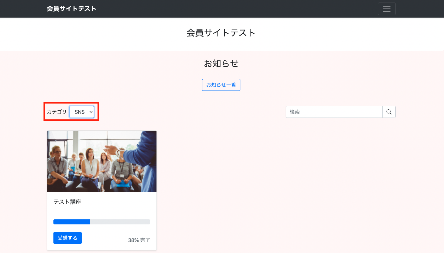 ↓カテゴリや検索バーからコースを検索できるようになります。