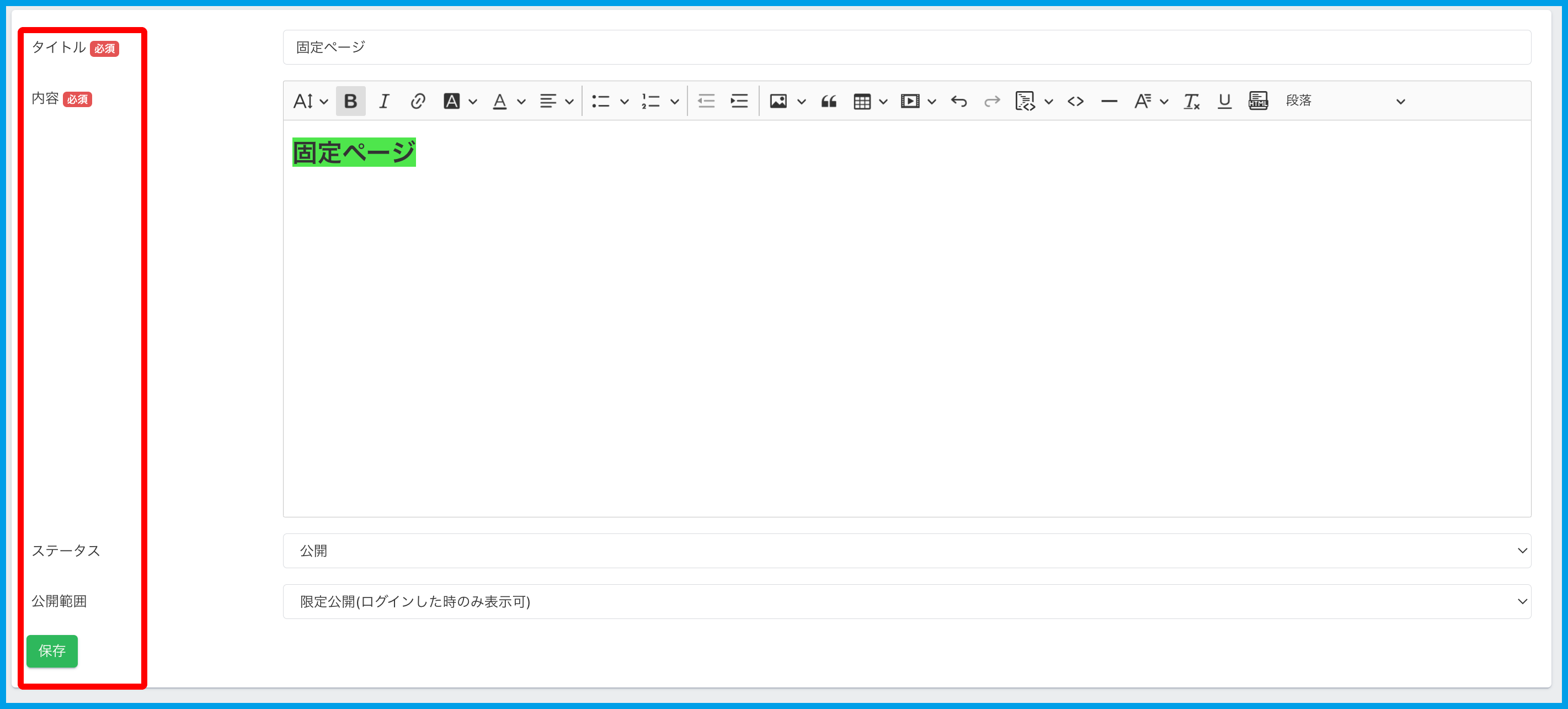 ※限定公開とした設定した場合、ログインページのフッダーに設定しても表示されませんのでご注意ください。