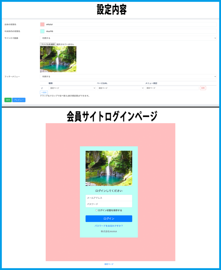 ログイン画面のデザイン、ロゴ画像の設定をすることができます。