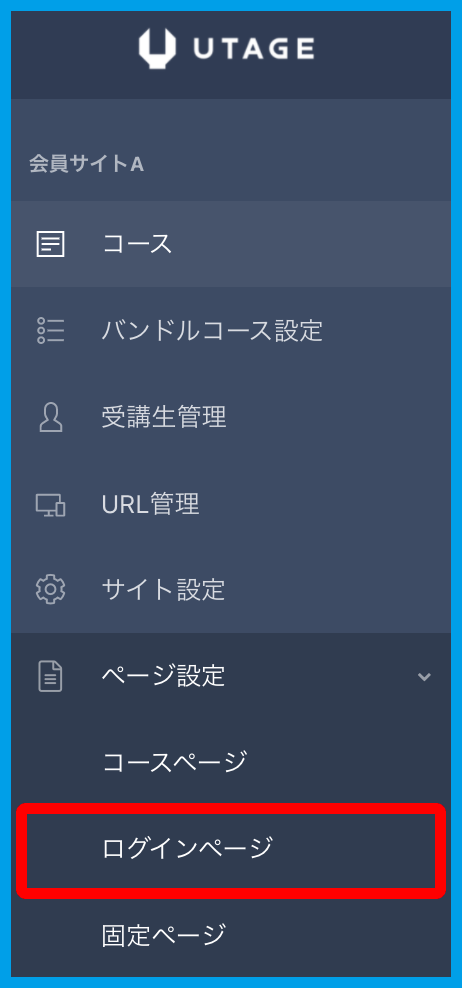 1.左メニュー「ページ設定」より【ログインページ】をクリックします。