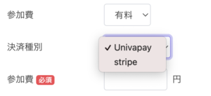 【イベント設定】>決済種別:UnivaPayと設定の上、