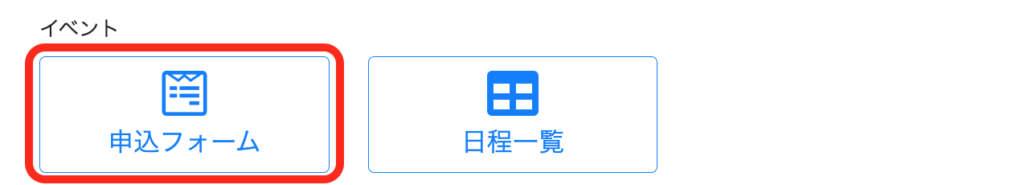 4.ポップアップ表示内にて【イベント:申込フォーム】をクリックします。