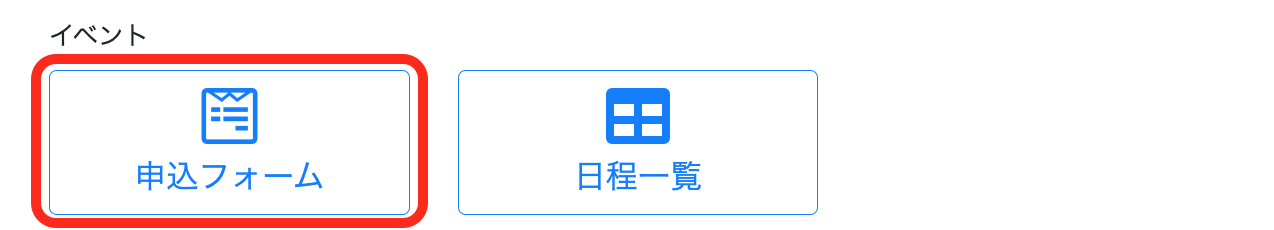 イベント機能と連携して、イベントの申込フォームをページに埋め込むための要素です。