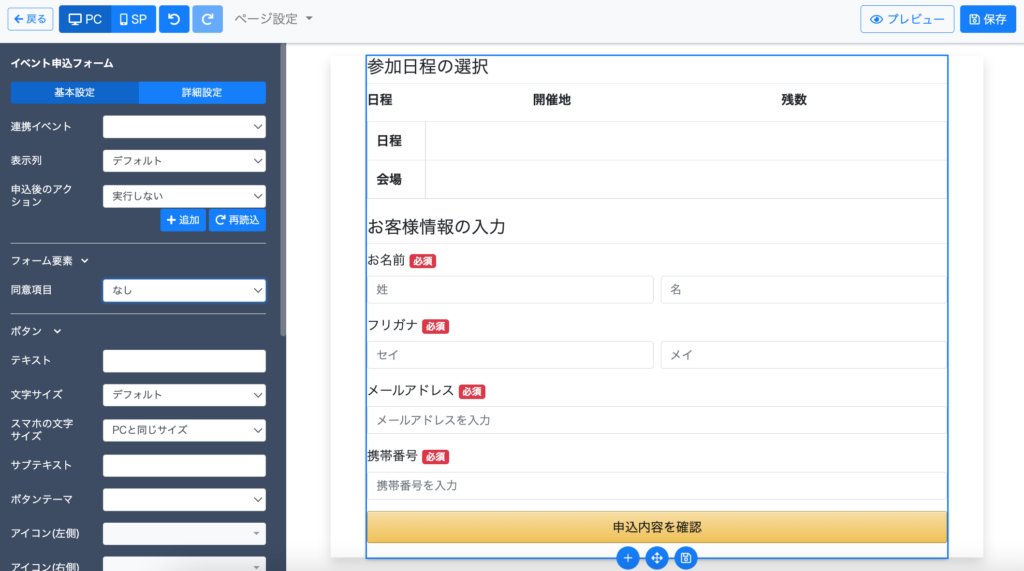 ページ要素【イベント:申込フォーム】とは?