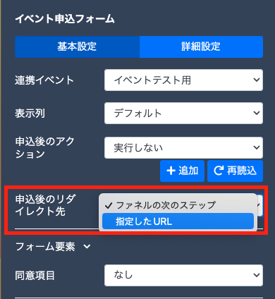 『ファネルの次のステップ』『指定したURL』より選択できます。