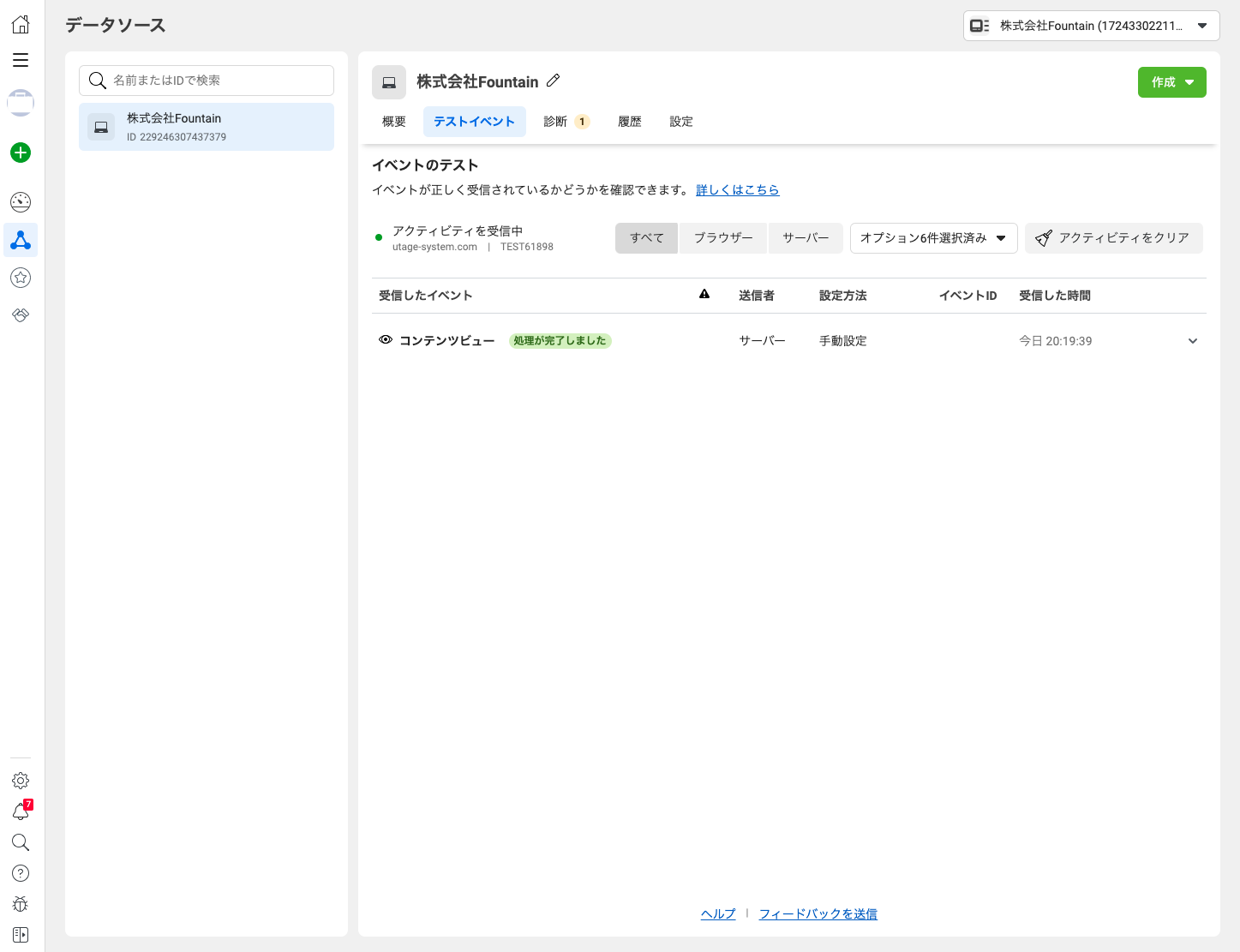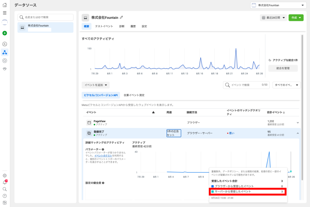 サーバーから受信したイベントとして計上されていれば連携は完了です。