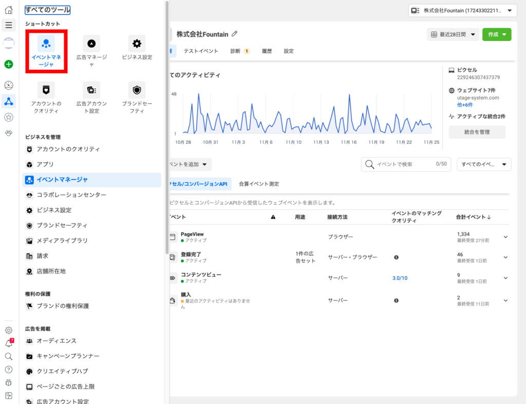 Facebook広告側ではイベントマネージャより