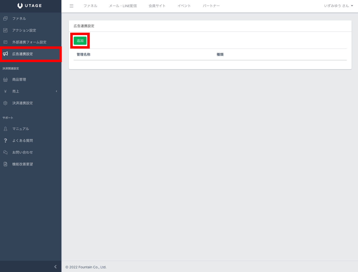 ・広告連携設定の追加