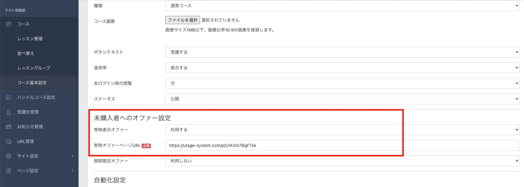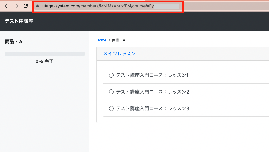 コース上部に表示されているURLを共有することで、コース単体をログインなしの無料コンテンツとして開放できます。
