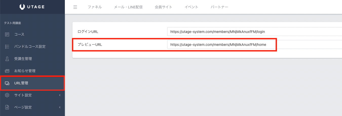 7. 「URL管理」よりプレビューURLを共有することで、ログインなしでの閲覧可能なコースをご案内いただけます。