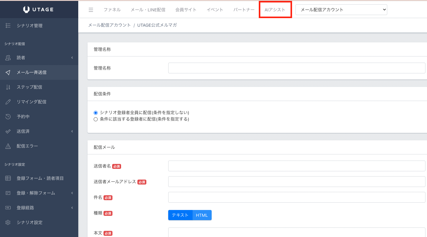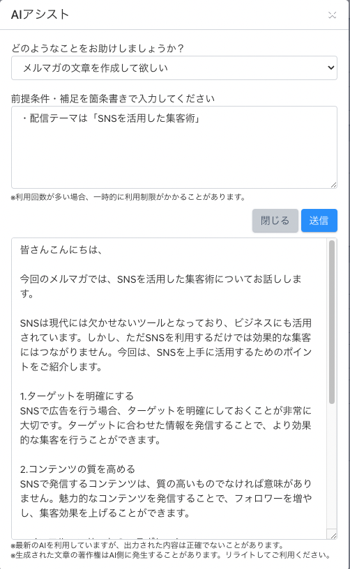 1.ステップ配信やメール一斉送信にて、メール作成をアシストしてほしい場合にご利用頂けます。