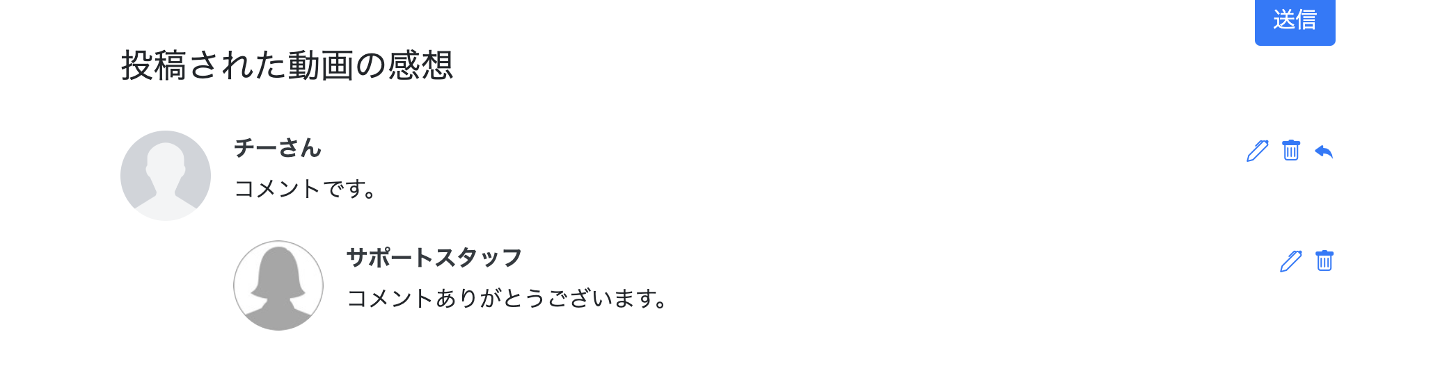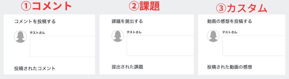 コメント機能を『利用する』に設定すると受講生はコメント投稿、画像の送信をすることができます。