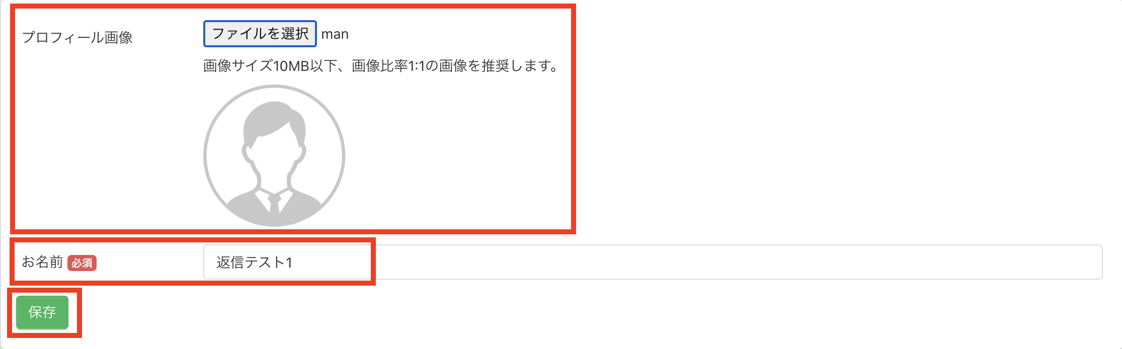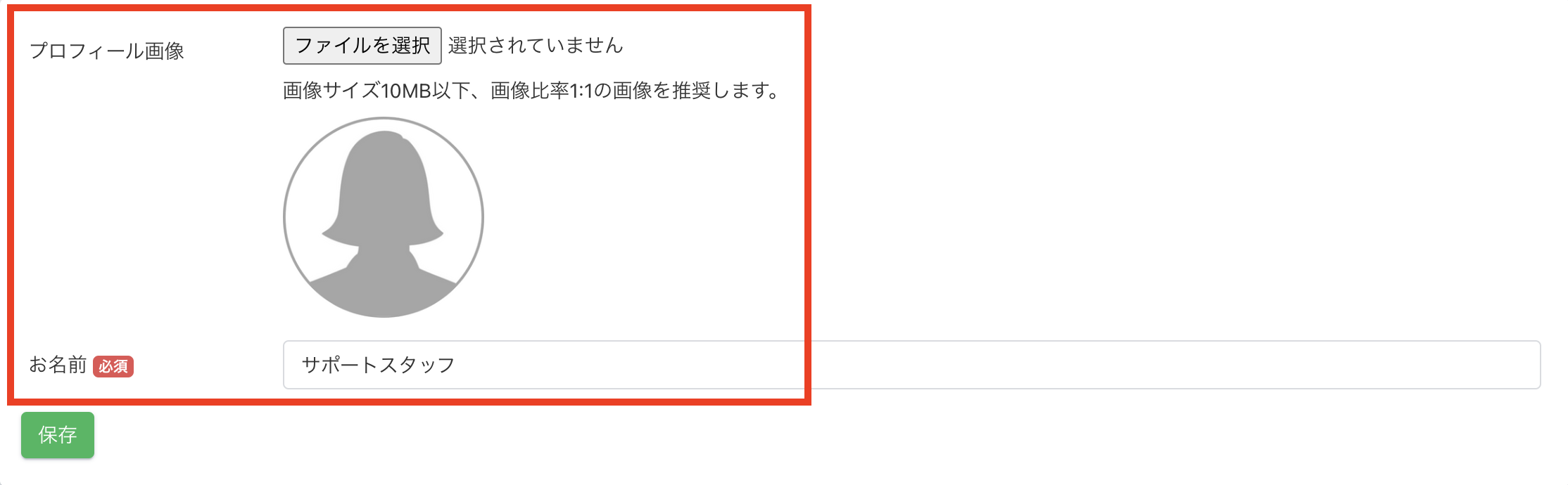 2.【プロフィール画像】からファイルを選択してプロフィール画像をアップロードします。