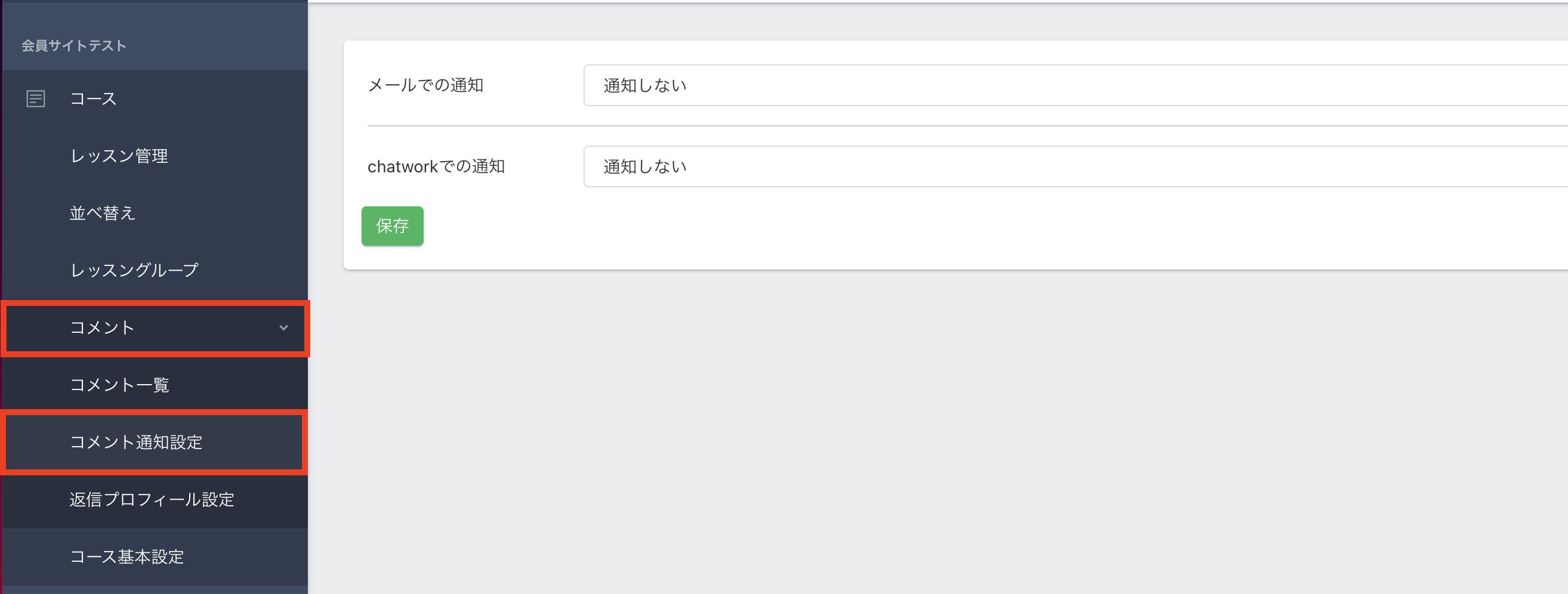 1. 【コメント】>【コメント通知設定】をクリックします。