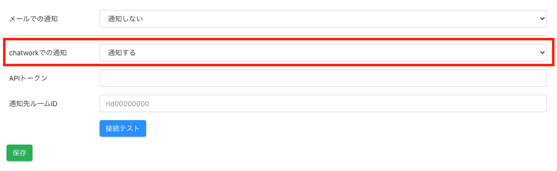 9.「通知先ルームID」にを上記手順でメモしたルームIDを入力します。