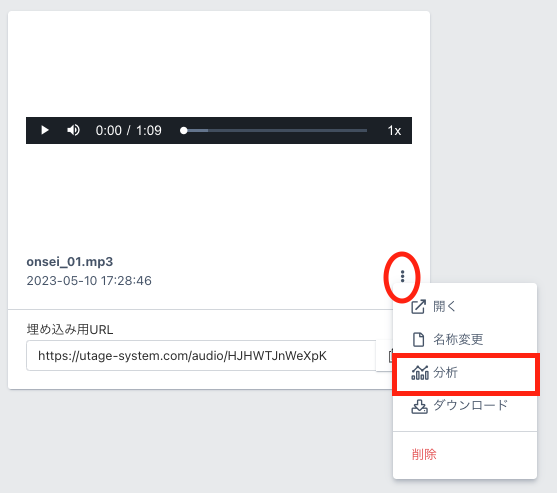 1.音声右下の三点ボタンをクリックすると、下記画像のようなオプションが表示されます。