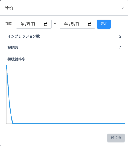 2.「分析」をクリックすると「インプレッション数」「視聴数」「視聴維持率」を確認できます。