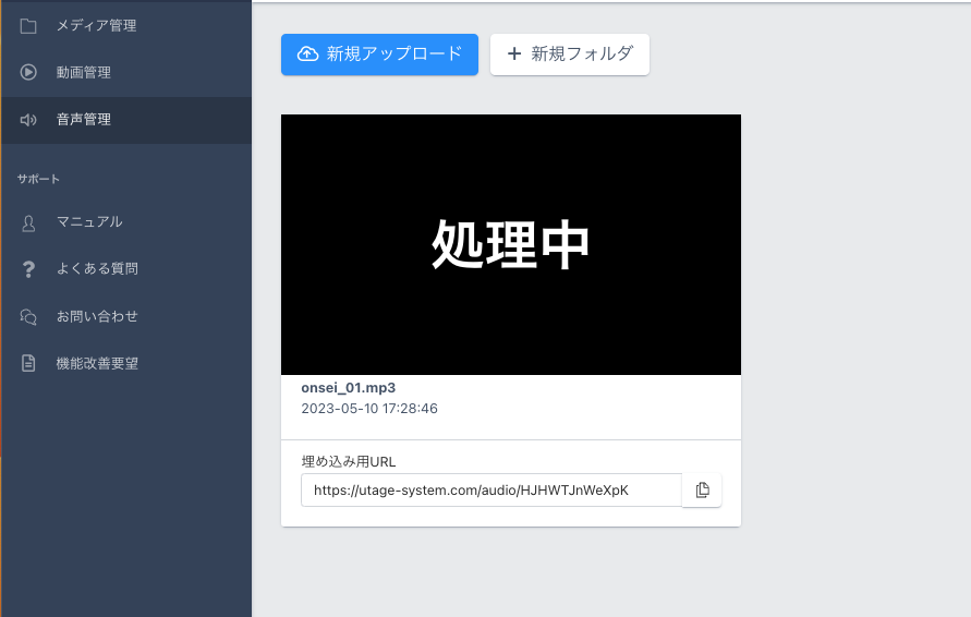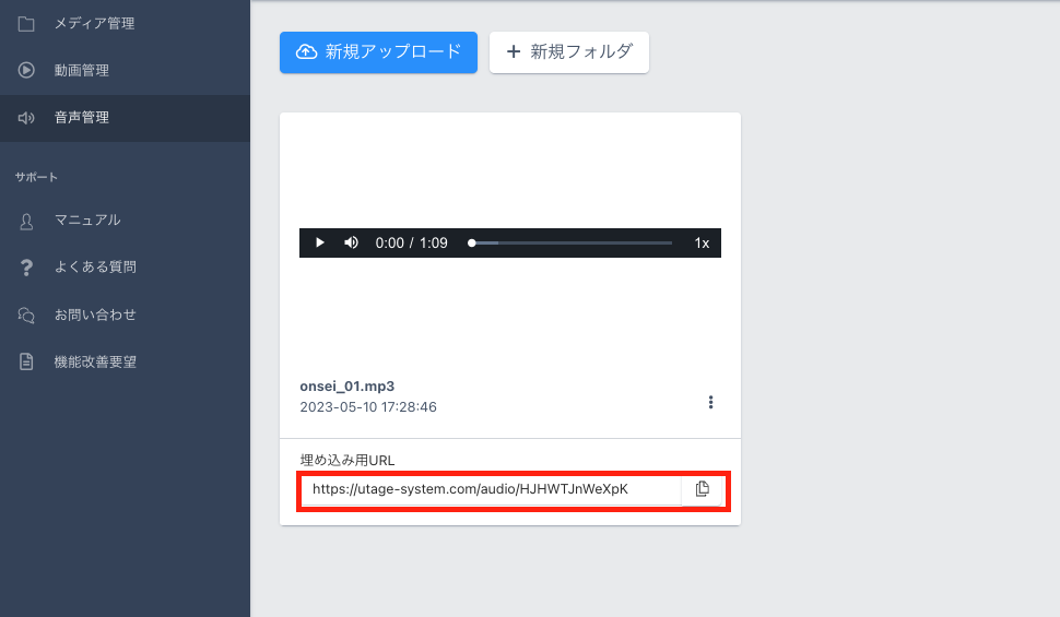 UTAGEシステム上に直接音声をアップロードできる機能です。