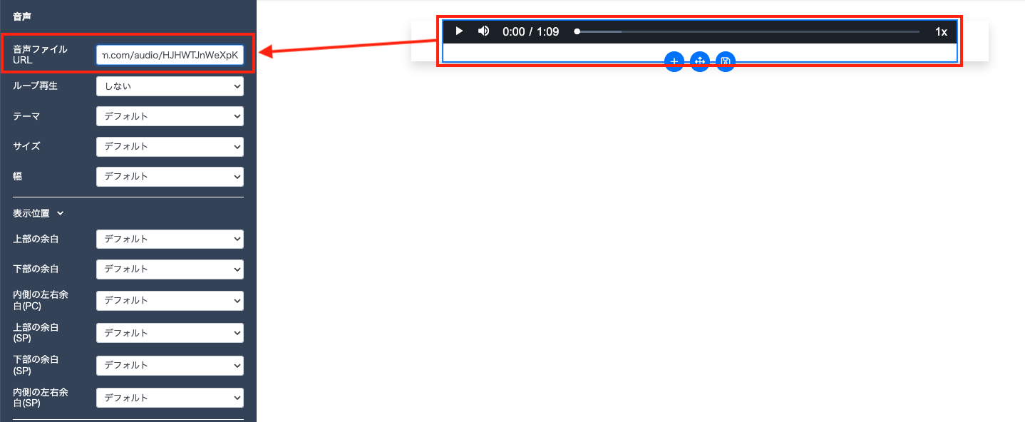 『音声ファイルURL』にアップロードした音声のURLをコピペします。
