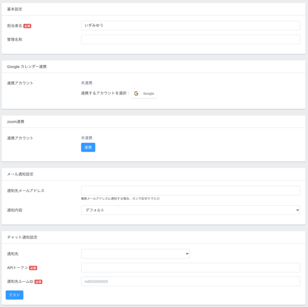 4.「担当者」の情報を入力し「保存」を押します。
