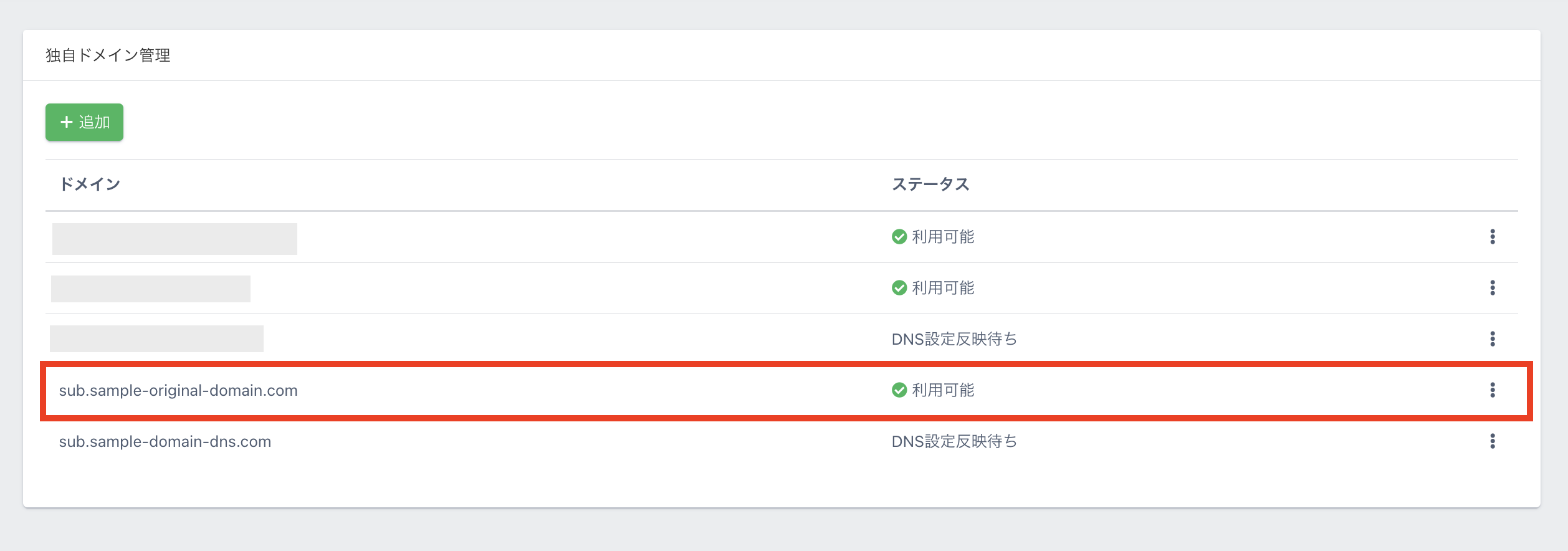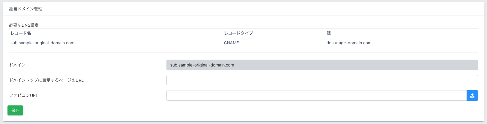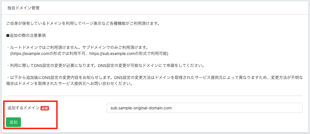 ※独自ドメイン部分「sample-original-domain.com」は入力する必要はございません。
