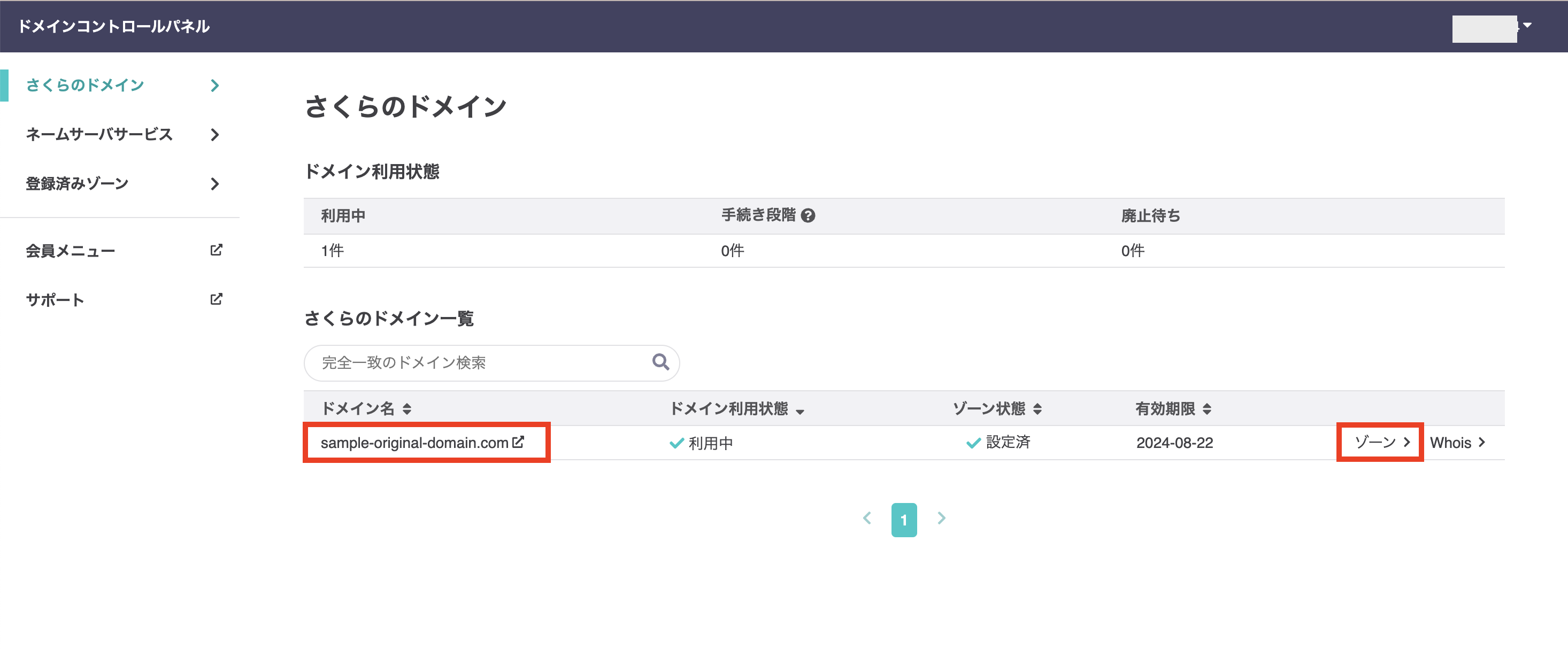 ※今回さくらドメインで取得した独自ドメインは「sample-original-domain.com」になります。