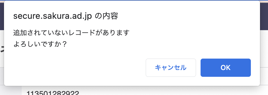 6.「追加されていないレコードがあります よろしいですか?」のポップアップが表示される場合でも、【OK】をクリックします。