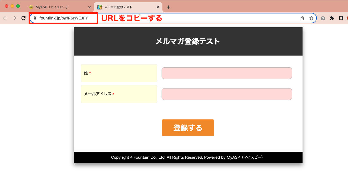 3.【登録ページの表示】より登録ページのURLをコピーしておきます。