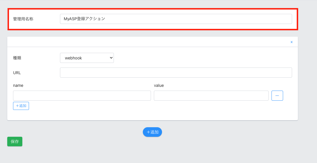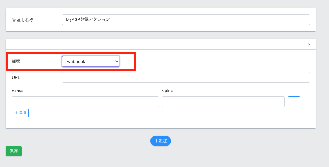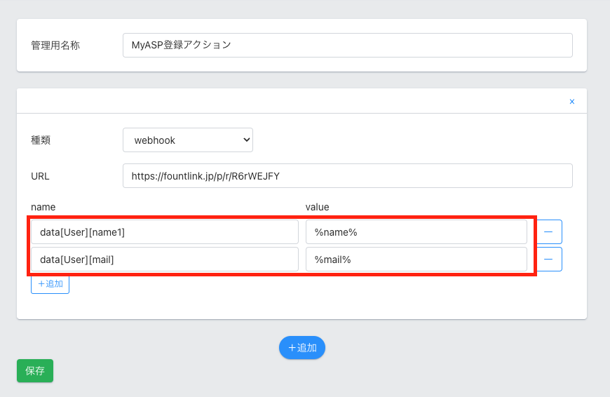 外部連携フォーム設定ではなく、ファネルアクションの「webhook」を利用することで