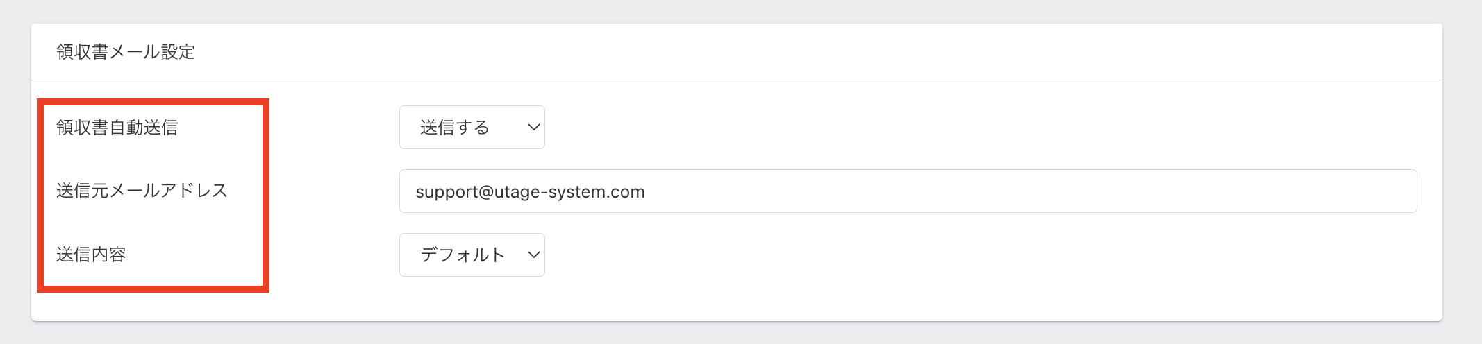 領収書メール設定