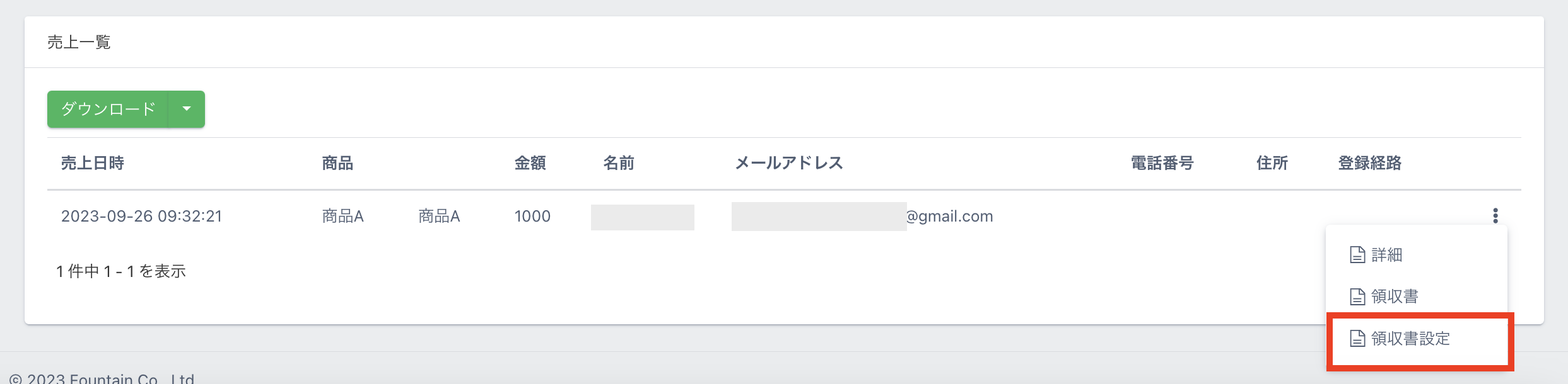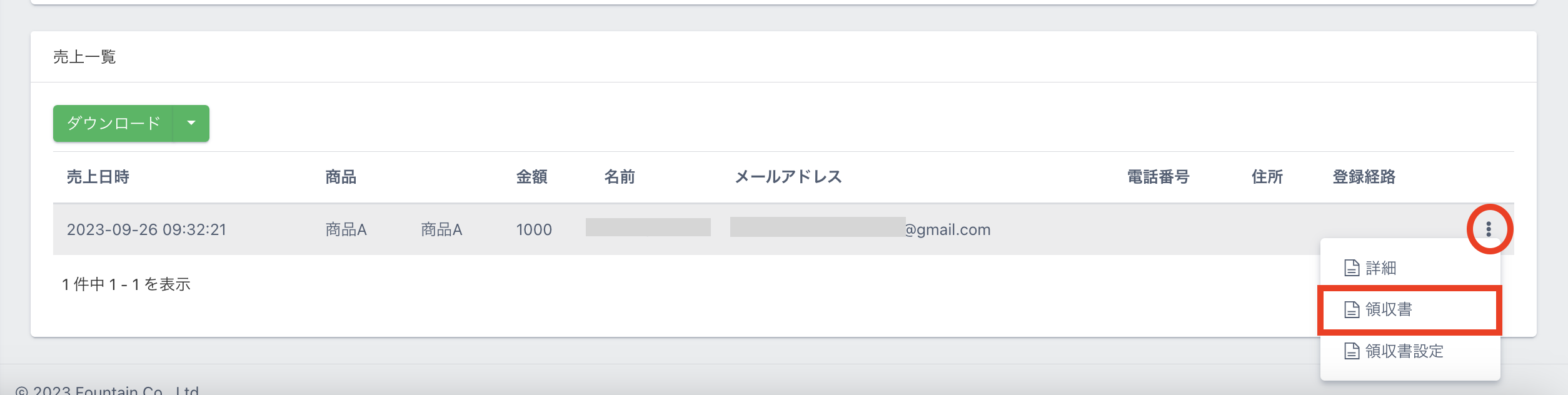 【事業者設定】が完了している場合、【売上一覧】より個別に領収書を発行することができます。
