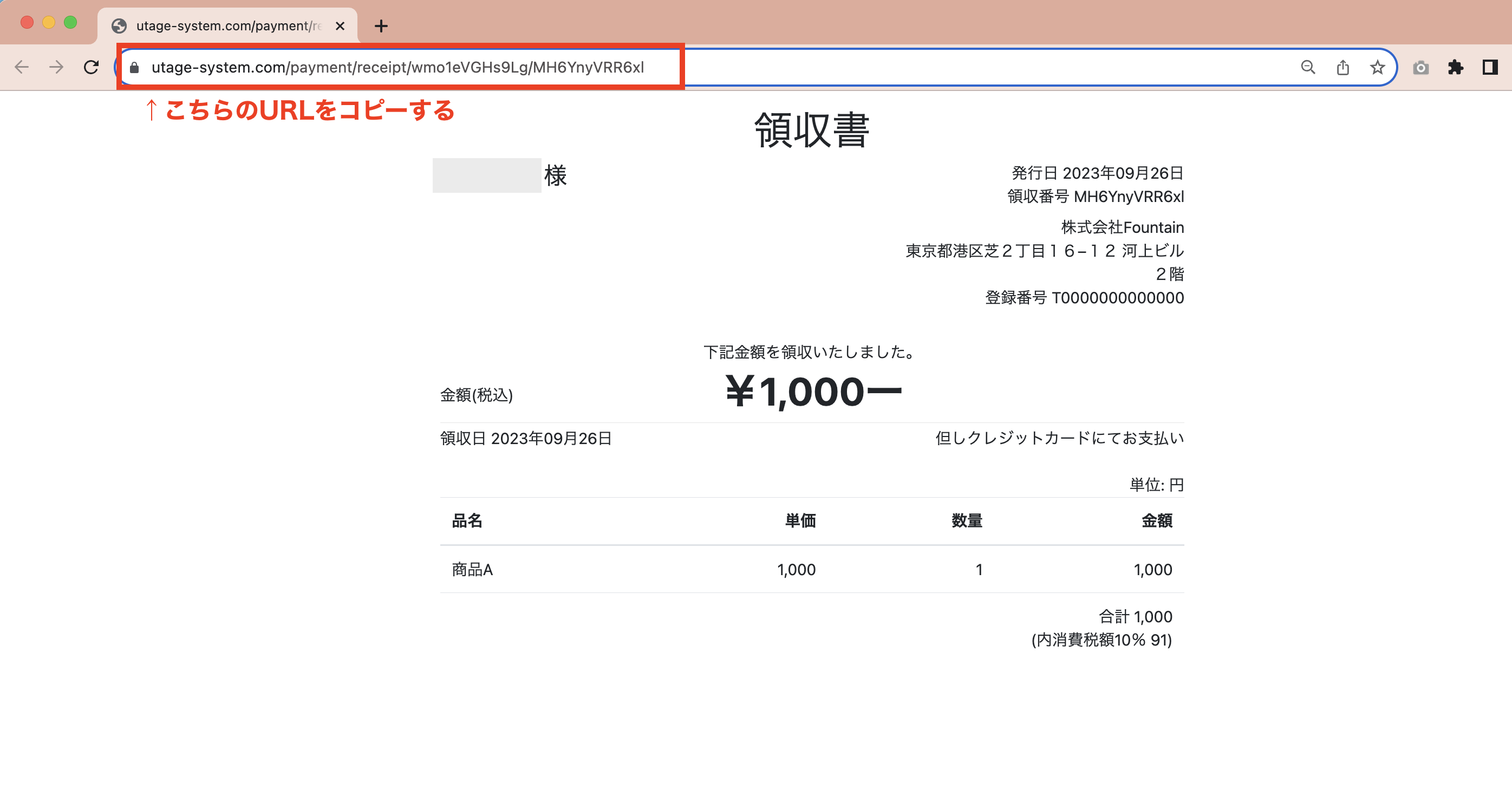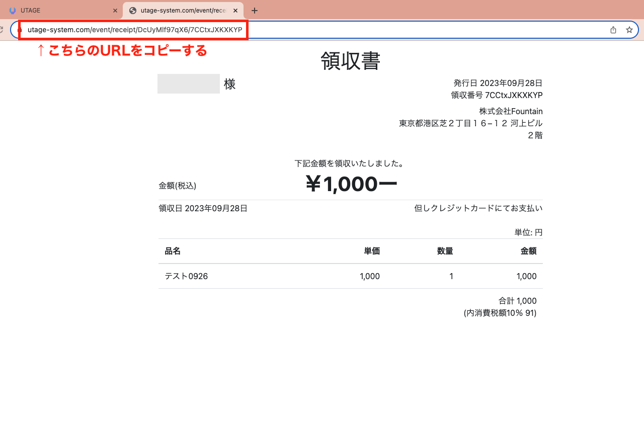 2.領収書のタブが開きますので、URLをコピーして購入者へご案内ください。