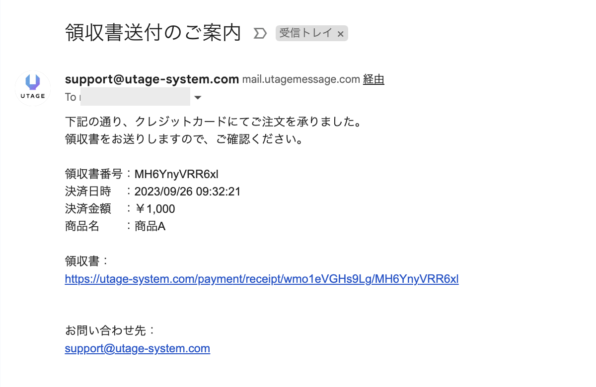 決済完了と同時に領収書を自動でメール送信することができます。