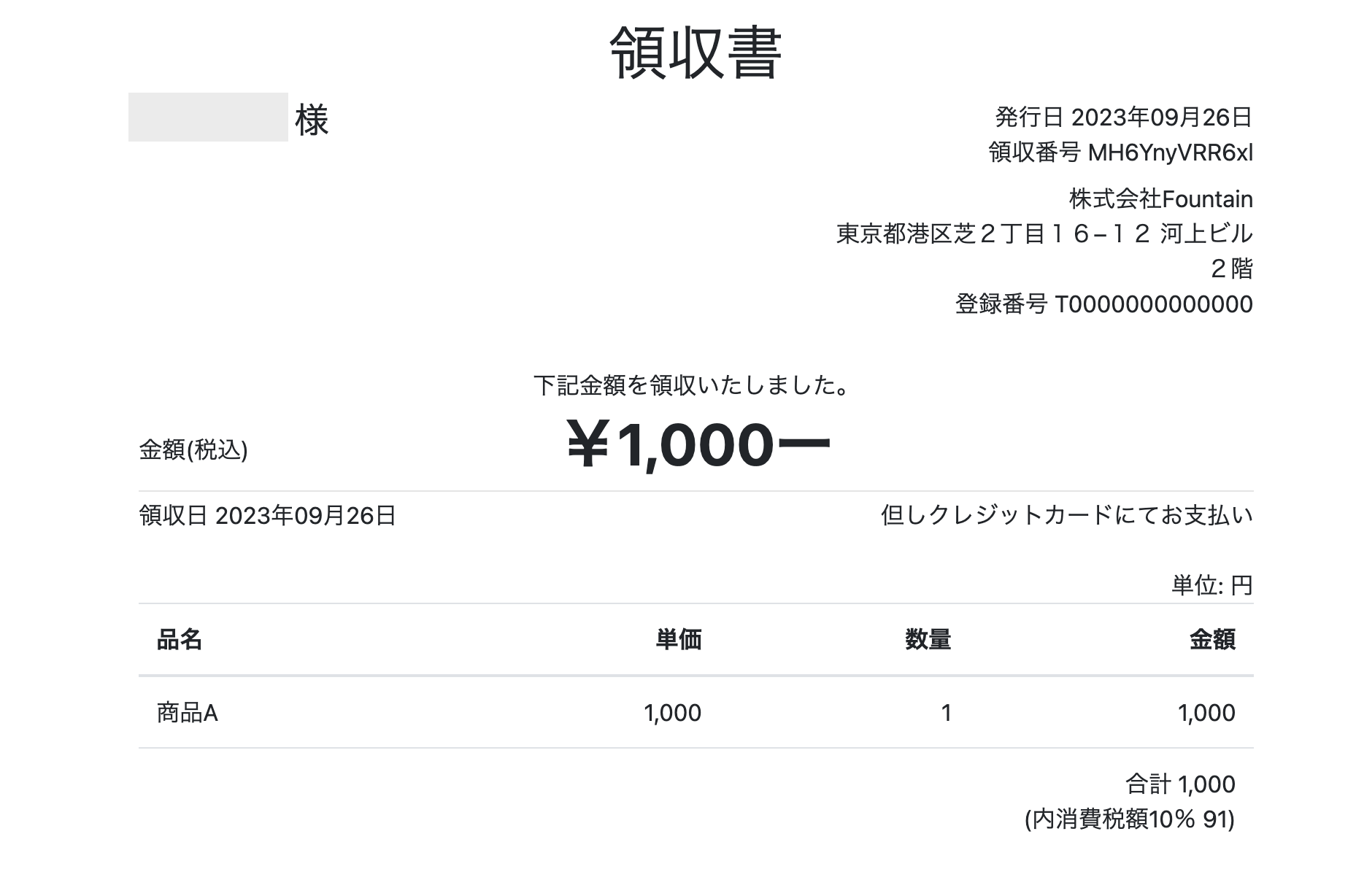 ↓領収書のURLをクリックしたところ