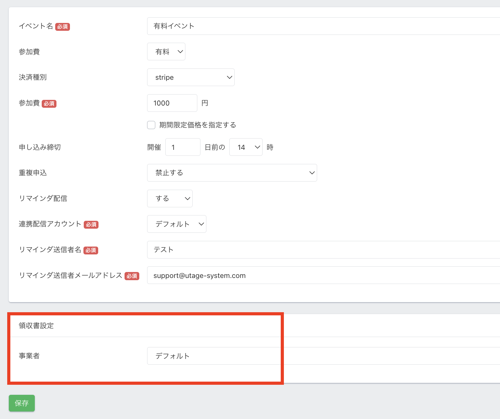 有料イベントの領収書発行する